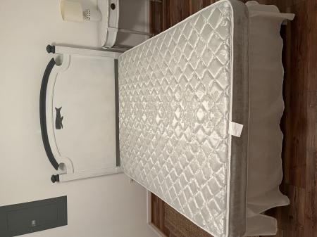 Selling our Queen Bed Frame along with Queen Mattress and box foundation.