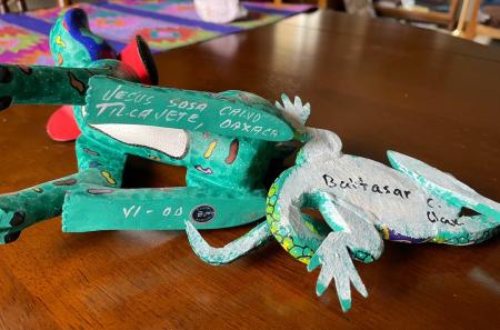 Signed, Carved iguana reptile by Baltazar from Oaxaca. Beautifully carved and painting with detail from copal wood. From my 35 year collection. $20