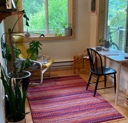 Handwoven 100% recycled cotton rug (made from discarded textiles.)