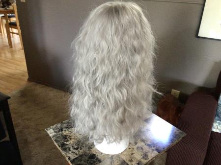 Another great fun long wig. Wavy layers flow down the back and along the face. Bangs can be trimmed to any length. Great for “glam” or cosplay or Halloween or just anytime. Never worn. Size: average $25