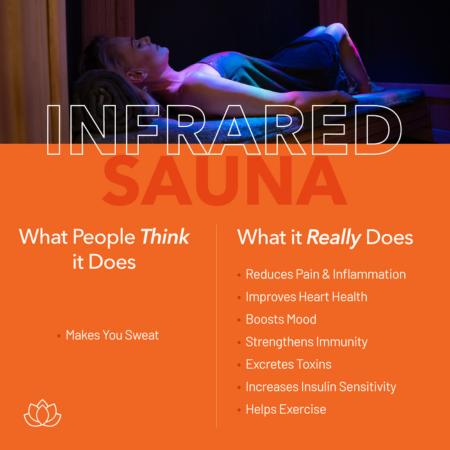 Detoxification through sweat is a centuries old practice. Did you know that sweat is more than temperature regulation, it’s also part of the body’s elimination system? It’s one of the best ways to detox your body. Infrared warms the body from within which provides a unique opportunity for health benefits. So many good things: