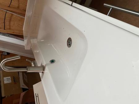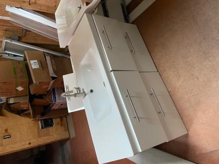 2 free Ikea bath vanities with integrated sinks removed during a remodel, in great condition. Very similar to the Godmorgon/Odensvik model, with 4 drawers in glossy white, ceramic top with integrated bowl, and brushed nickel faucet. 48″ w x 19 1/4″ d x 25 1/4″ h. Located in Manzanita.