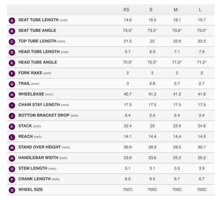 Detailed measurements online at, liv-cycling(dot)com/us/alight-3