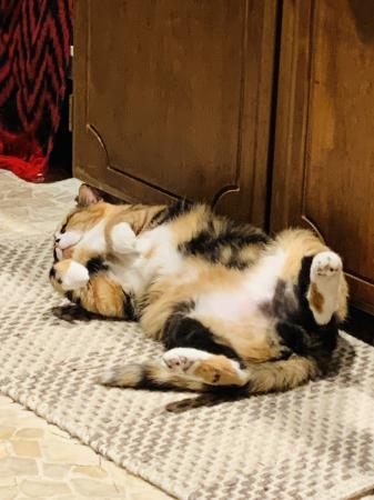 Beautiful Marisol calico cat seven years old looking for a home after her person mom died. I am fostering it in-between times. She is a very friendly cat and wants to be petted a lot. Great loveable lap cat. Manzanita 802-363-1791
