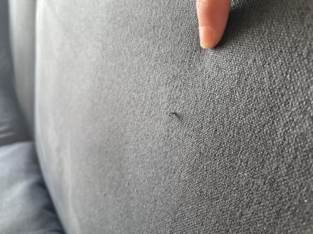 Decent condition hairy pets in house vacuumed and lint rolled not perfect no rips or tears no stains