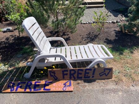 FREE EXCELLENT LOUNGE OUTDOOR CHAIR & GAS MOWER. TECUMSEN GAS MOWER WITH MANUAL. Mower also comes with can of starting fluid. Mower was tuned up in Tillamook earlier this year. Been sitting, needs some TLC to turn over. Is a workhorse when runs!