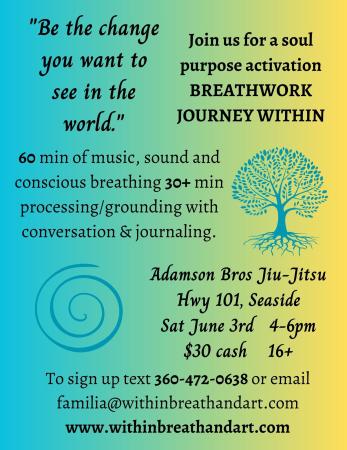 This weekend we are breathing in the new energies and releasing what no longer serves us! The time has come for us to go within and bring about the change we want to BE in the world! When we heal ourselves, we heal each other! Raising our vibration to live in abundance and choosing freedom over fear! We can do this! Hope you will join us. For details and to sign up go to www.withinbreathandart.com or text