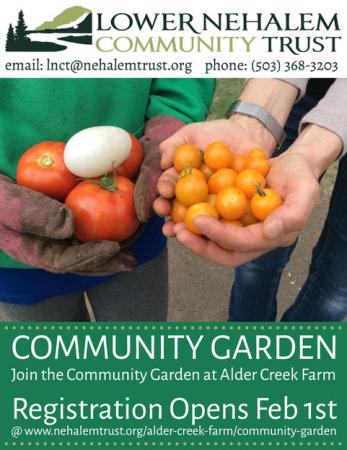 Alder Creek Farm Community Garden registration is open: www.nehalemtrust.org/alder-creek-farm/community-garden/