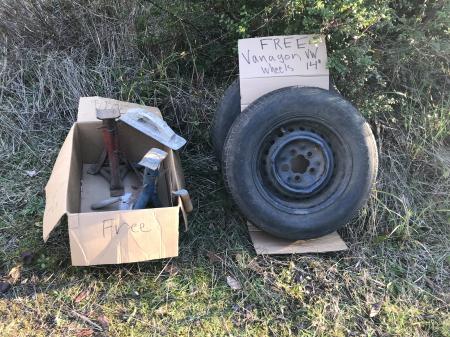 We’ve got a nice dining-room table 44×66” top (made in US) that needs a new home. Also 2 14” Vanagon wheels. All are free and can be picked up at 35135 The Glade in Nehalem (near the cemetery).