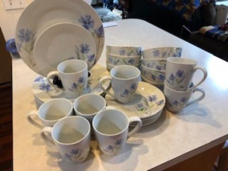 Charming 32-piece dinnerware set, nearly new. Tabletops Gallery “Wildflower” pattern. Service for 8. Made of sturdy white porcelain. No chips or cracks.