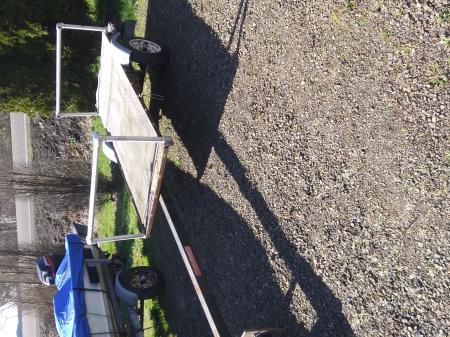 This utility trailer was made from a boat trailer which makes it ideal for launching a small craft or inflatable. I also used it to haul a number of different things and it has always held up well. The distance from deck to tongue is especially helpful when backing up with it. Price is $300