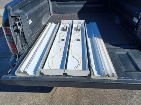 Two four foot double tube fluorescent ceiling mount light fixtures with bulbs and diffusers. Both work fine and are ready to install. Free for pick-up in Bayside Gardens. Call or text Bob at 971-344-3712.