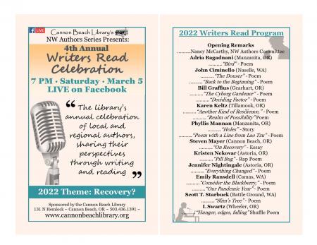 Join the Cannon Beach Library, tomorrow Saturday, March 5 at 7 p.m. as we celebrate two things we love the most at the library – writing and reading!