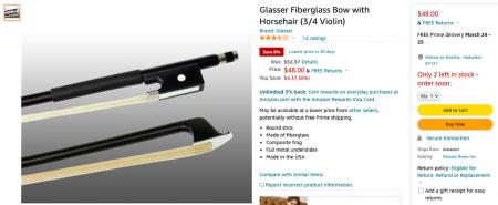 Glasser Violin Bow 201-H 3/4 (27″ long)