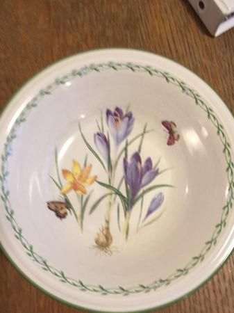 Dinner plates have violets and soup bowls have crocuses on them. 8 plates and 8 bowls $ 16.00