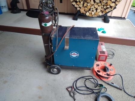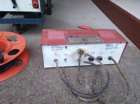 High frequency welder(220)with high frequency arc stablilizer box,torch with cord reel. Good for welding all metals,including stainless steel and aluminum. Also includes bottle of argon,welding helmet and lots of welding rod. Works great. Welding supply in Oregon City says this is a fair price.