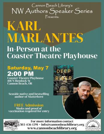 North Coast native and popular author Karl Marlantes will discuss his novels, “Deep River” and “Matterhorn” during a presentation sponsored by the Cannon Beach Library.