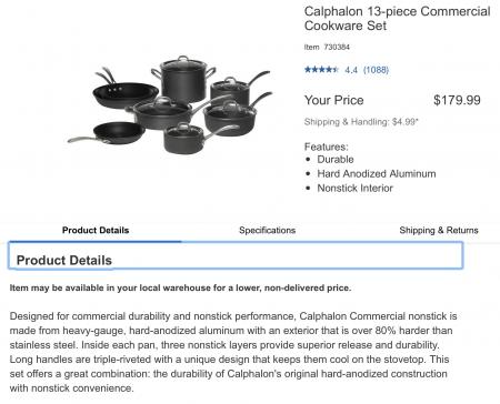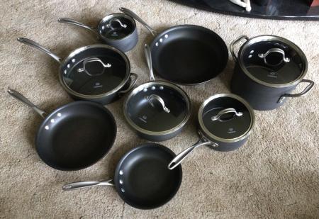 For sale Calphalon Commercial Cookware set. Used. Good condition. Sells at Costco for $179 our price $80.