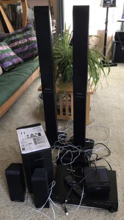 Panasonic Home Theater. 5 DVD/Disc changer, great sound, not refurbished. Has all current hook ups, including optical sound. One small cosmetic flaw.