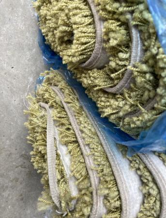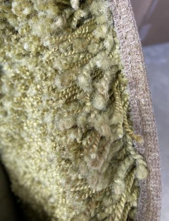 Beautiful green plush area rug that was custom made for our previous home. Originally purchased for $2000, but it needs a good clean and a new home, so offering for $200 OBO. From a smoke-free, hypoallergenic pet home. No stains. Some wear and tear (see photo of edge where stitching has come undone). We LOVE this rug but it’s a bit too large for our space now.