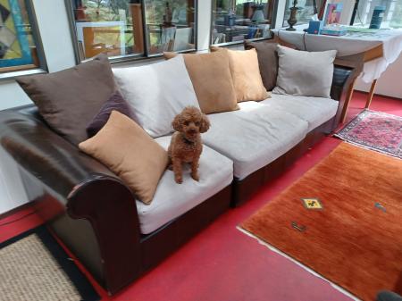 Not the dog. The couch.