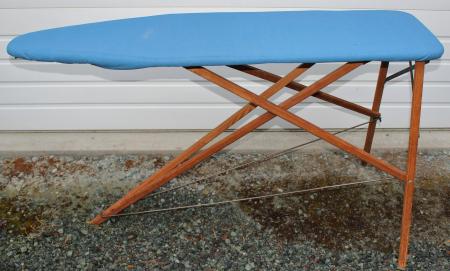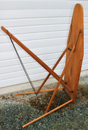 This very charming and perfectly functional ironing board is really special. It scissors open by means of a handle underneath, and is really sturdy and secure,