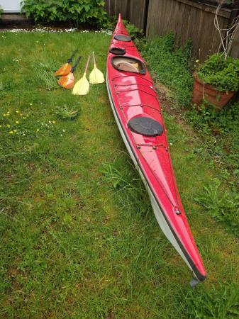 Beautiful Romany 16 sea kayak in good condition except that one hatch cover needs to be replaced. Comes as a package with two paddles (one Werner), men’s medium dry suit, all safety gear, dry bags (including one that fits snout), etc.