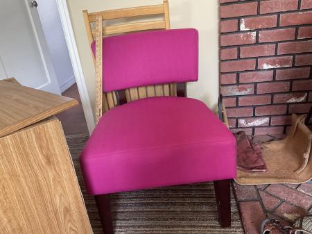 This is a lovely chair that needs a new home. I got it from World Market a few years ago. I believe it is made in Indonesia, legs are real wood, the color looks correct on my screen. It is fairy compact so easy to fit into any space. Smoke and mold free household.