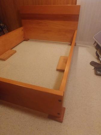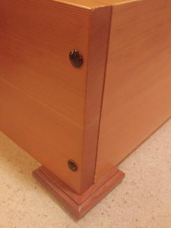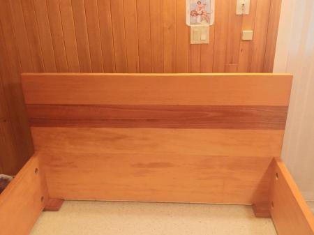 Queen size custom bed frame and headboard. Clear vertical grain cedar with Brazilian harwood accents. Made in Nehalem.