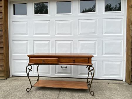 MATCHING CONSOLE TABLE: 48” L x 18” D x 28.5” T- 2 DRAWERS AND FULL SHELF BELOW. GREAT FOR STEREO SPEAKERS- LAMPS ETC.