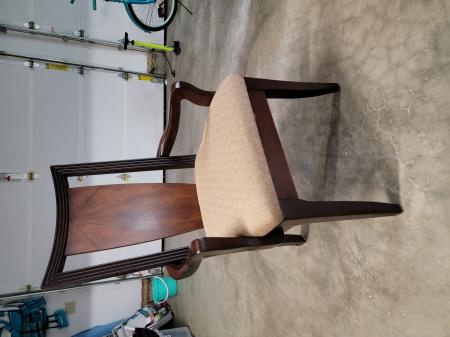 For Sale in Manzanita: Four solid wood dining room arm chairs in very good condition. Some visible wear. Solid wood with sand colored upholstered seats. $120 for the set. Can be delivered within 15 miles of Manzanita.