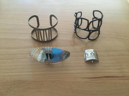 From Portland jewelry company Stubborn Stiles (stubbornstiles.com) two barely worn sculptural bracelets for $10.00 each. Also a Native American sterling silver barrette with turquoise insert from the Heard Museum gift shop for $25.00. Plus a silver ponytail band concealer for $5.00. This and more, including the earlier posted leather club chairs, and an inflatable mattress for guests available for inspection at the Pine Ridge garage sale this Saturday from 9 until 3. Turn right at the entrance gate. Cash only.