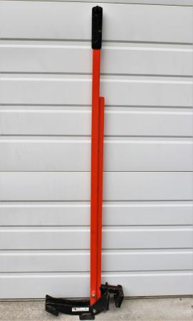“The Extractigator begins the pull with a minimum 12:1 ratio, with the handle at a height which allows the operator to use body weight as the pulling force. If the operator applies 10lbs of body weight to the end of the handle, he or she is applying initially 120lbs of uprooting force to the plant. The fulcrum distance increases to remove the entire plant. With the minimum 12:1 ratio – If the operator applies 100lbs of body weight to the end of the handle… that’s 1200 lbs of uprooting force!! The Extractigator is made of high quality steel, professionally welded with strength and weight as considerations. Grade 8 High Tensile steel bolts with self locking nuts are used as the pivot pins, as they have over 4 times the strength of normal steel.”
