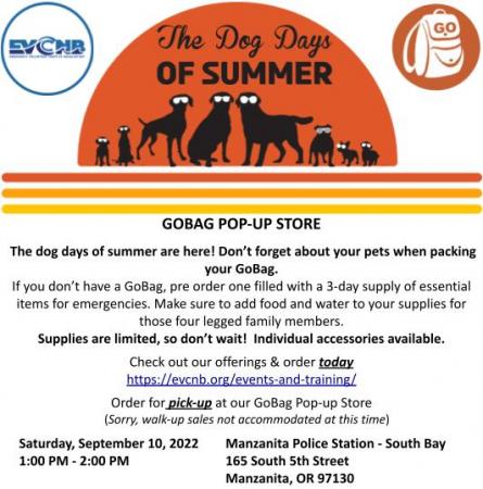 The GoBag Pop-Up is open for pre-orders. You can pick up your purchases in Manzanita. Check out the complete GoBags as well as accessories and individual items. Don’t forget to include items for your pets.