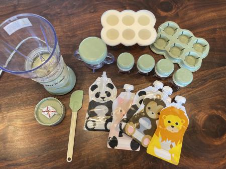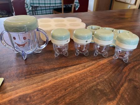 Brand new Baby Ninja set. Used maybe once and then stored for a few years. Comes with secondary blade, 4 storage containers (small), and 1 large storage container, freezer tray with cover sealer, 5 baby good pouches and a spatula.