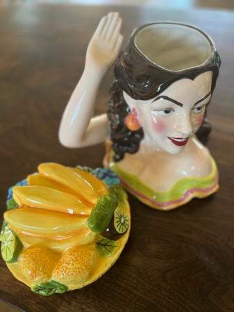 Carmen Miranda Cookie Jar Posted on September 19, 2022September 19, 2022 by North Coast BBQ Submitted By: redbudcafe@gmail.com – Click to email about this post Classic nostalgia cookie jar. $50 Used. No cracks or noticeable imperfections are markings. Nehalem. Email if interested: redbudcafe@gmail.com