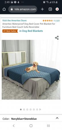 Waterproof reversible blankets in light/dark blue. Used these on our sectional for when we watched dogs, but have gotten rid of sectional. Washed after each use and there were no accidents- only hair. Excellent condition. $10 for pair.