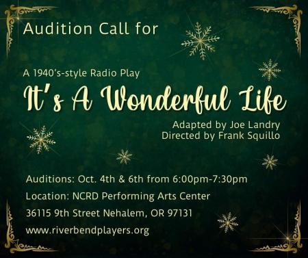 Calling all new and seasoned actors to audition for It’s A Wonderful Life: A Radio Play by Joe Landry. This is a readers theatre production so scripts are read as though you’re part of a radio broadcast during the Golden Age of Radio. Frank Squillo is directing.