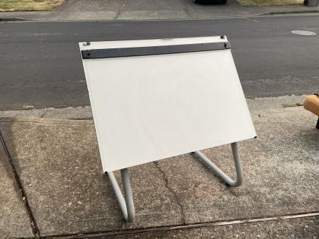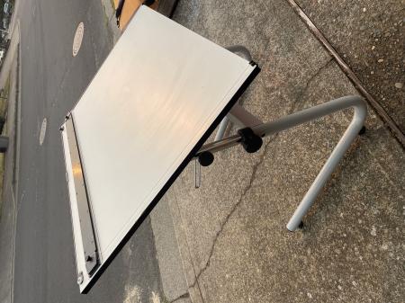Almost brand new drafting table can be used for art table. Table can be adjusted for any height and can be tilted down to perfectly vertical and horizontal. Surface has no bumps or nicks so its ready for delicate art work where a smooth surface is needed. Straight edge is on a cable system so it slides across the table easily and locks into place when needed.