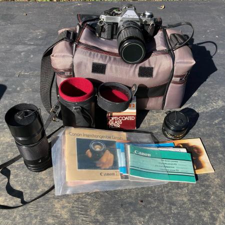 Second owner selling their perfectly preserved 80’s gem Canon AE-1 to any interested. Includes original instruction manual and various lenses (50mm 1.4 and telescopic 70-150mm for Canon FD mounts). Also comes with lens cleaning paper and battery. The pictures say it all, everything has been taken good care of over the years, first bought in 1984. Selling because I have far too many cameras than I know what to do with. If interested don’t hesitate to ask about taking a look! Asking $300 but open to offers sensitive to budgets! Just want it to go to a good home and carry the spirit of film to the next generation.
