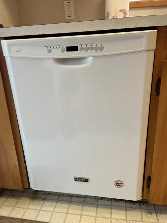 Cycle, Steam Sanitize, 5 wash cycles, 13-place setting capacity, 5 options, Silence Rating of 50 dBA and Energy Star® Rated: White. Stainless steel interior. Standard in-cabinet mounting. Good condition. You help remove. $90.