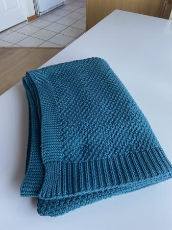 One cotton knit throw 50” x 70”. If keep the blanket- tho I’m into light colors these days!
