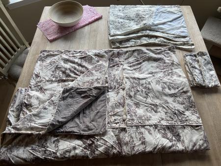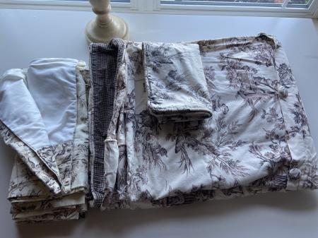 One Standard piped pillow sham and 3 valances (16 deep x 51 wide.)