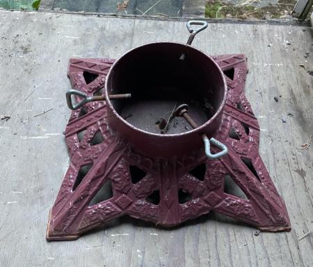 Used this stand for many years. It’s a classic and it held trees 8′ tall. Center section is 7″ in diameter. These range in cost from $85-120 online. Selling mine as is for $25.