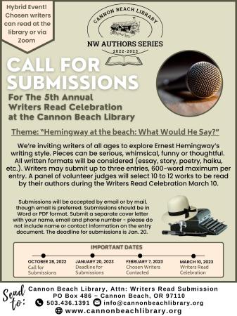 Cannon Beach Library. This is the fifth year of the Writers Read Celebration. Previous themes were: