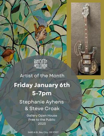 Friday, January 6 from 5-7pm, the Bay City Arts Center will hold a gallery reception featuring the work of two local artists, including paintings and drawings by Stephanie Ayhens, and steampunk art by Steve Croak. This monthly event is free and open to the public. To read more about the artist, or submit pieces of art for the BCAC Members Gallery, visit our website at baycityartscenter.com