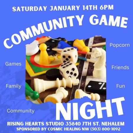 It’s almost time for our monthly community game night! Mark your calendars for January 14th @6PM, at Rising Hearts Studio. This is a free, fun event where you can meet your neighbors and have fun while playing games. Bring your own favorite game or play one of ours. Popcorn and lemonade provided. Donations gladly accepted. Hope to see you there!