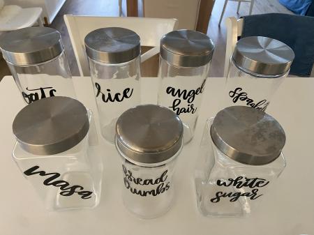 I’m reorganizing my pantry and offering my old glass jars to someone who wants to organize their pantry or cupboards. I have 13 jars ranging in size from 4-inches tall to 11-inches tall. Some are labeled as follows: oats, rice, angel hair, spaghetti, masa, bread crumbs, sugar, chocolate, soda.