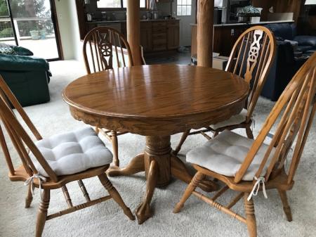 oak table for sale Posted on February 11, 2023February 10, 2023 by North Coast BBQ Submitted By: sjsb40@gmail.com – Click to email about this post Oak table and four chairs, with pull-out insert. Elegant. 43 inches in diameter. $150.00