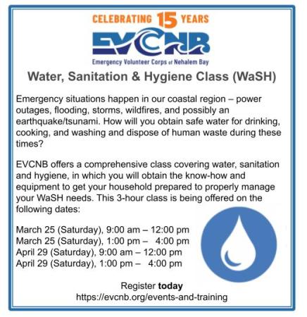 Sign up for one of our WaSH classes now. Both morning and afternoon sessions are now scheduled.